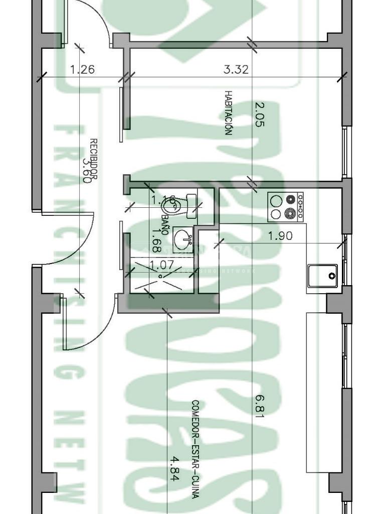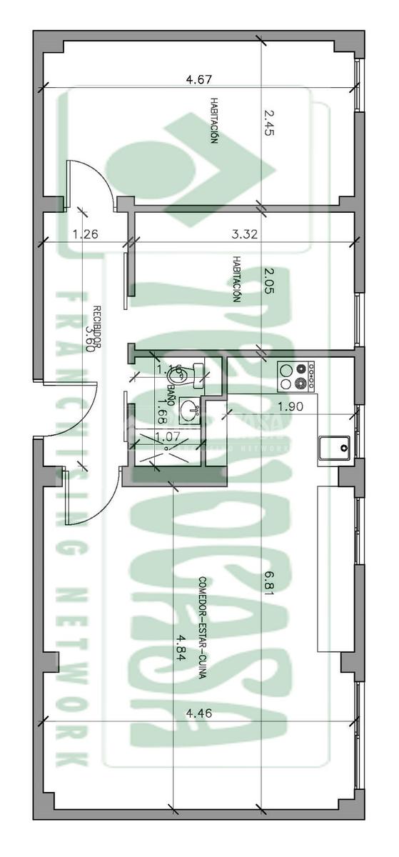 Originalmente de tres habitaciones, la vivienda fue redistribuida para ofrecer un amplio salón comedor, ganando así en amplitud y confort. Actualmente dispone de dos dormitorios, un baño completo y una cocina equipada.